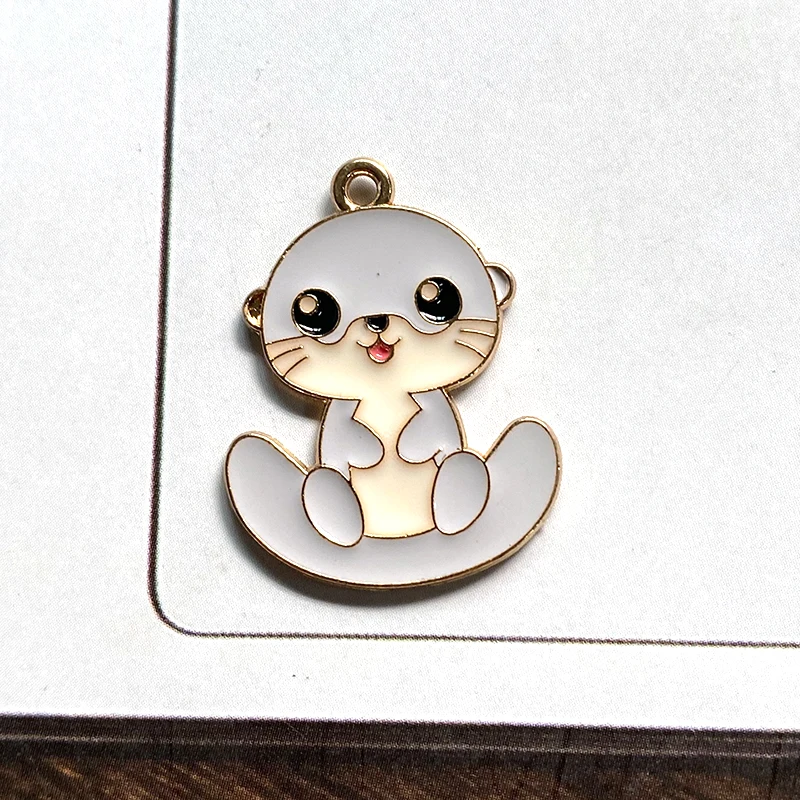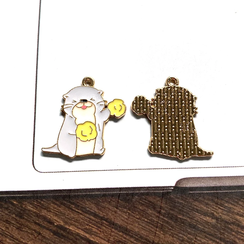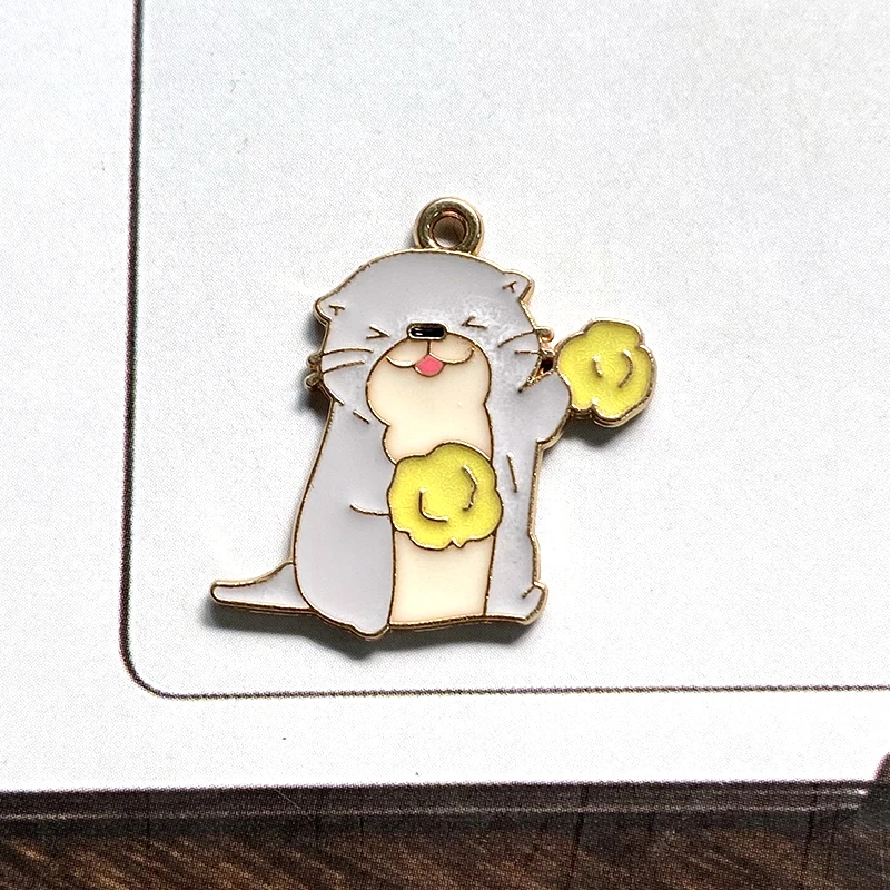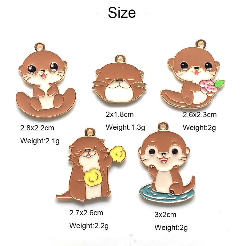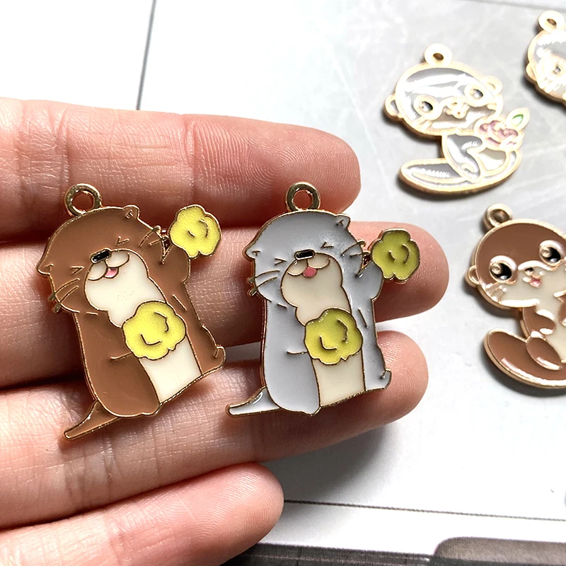 10pcs Original Cartoon Otter Alloy Enamel Charms Kawaii Lutra Animal Pendant For Earring Necklace Diy Jewelry Make