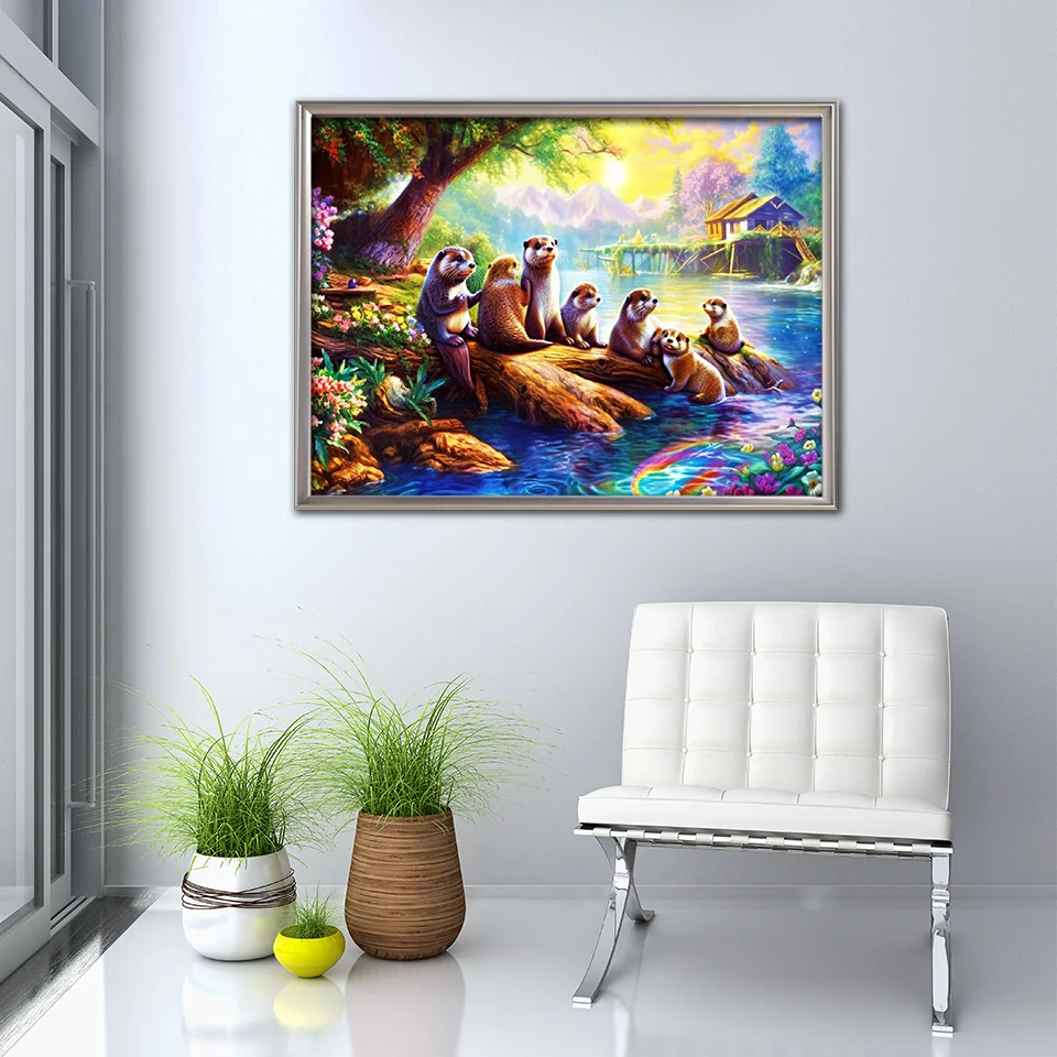 EverShine New Arrivals 2024 Diamond Embroidery Otter Animal Diamond Painting River House Full Set Home Decoration